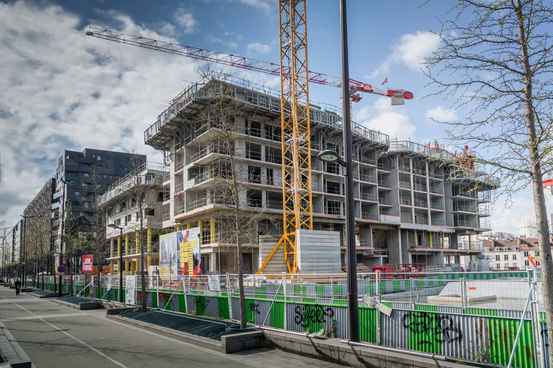Bostäder under produktion på överdäckningen av spårområdet längs Avenue de France. Platsgjuten stomme.