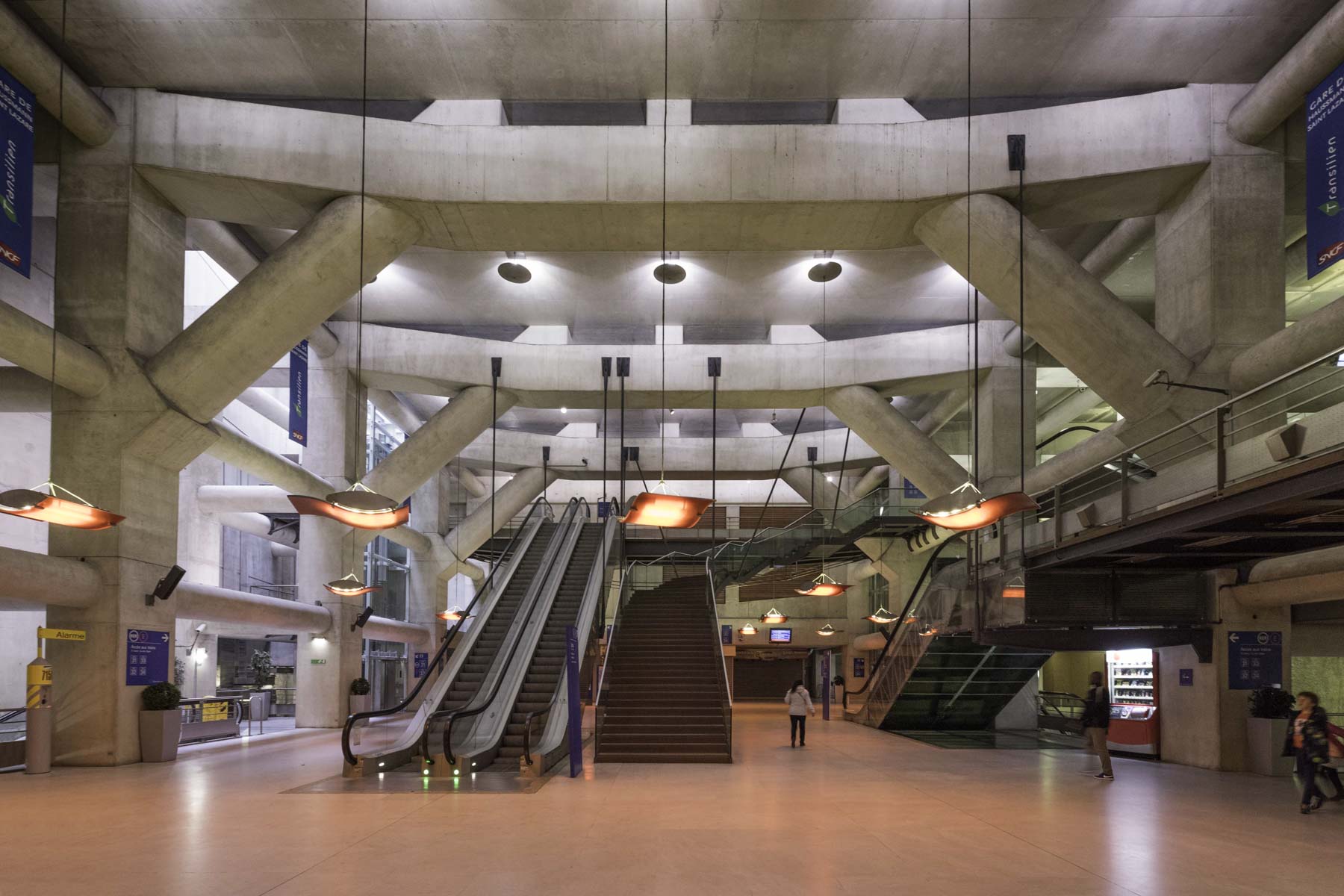 Ovanför går Metro linje 3, 9, 12. 13 och 14. Under går pendeltågslinje E.